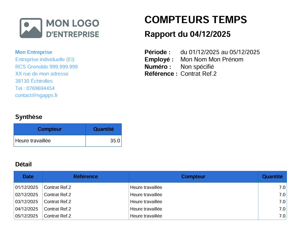 Générez des relevés d’heures et des exports PDF