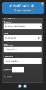 • Utilisez le champs « référence » pour associer l’événement à un contrat, un projet, ou une catégorie de votre choix