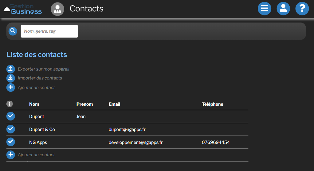 • Importez vos contacts de votre appareil vers l’application, pour simplifier la saisie