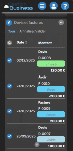 • L’envoi d’un devis ou d’une facture