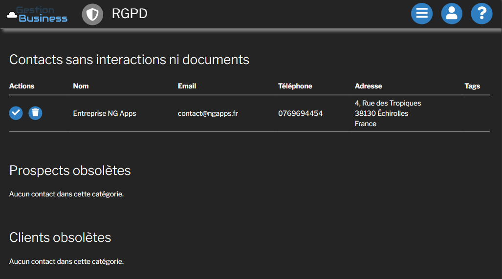 • L’application a été conçue pour vous faciliter la gestion des contacts du point de vue du RGPD